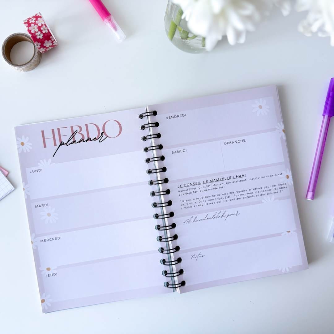 – 5 double pages hebdomadaires par mois pour pouvoir gérer plus en détail et à chaque fois j’ai ajouté « Le conseil de Mamzelle Chahi » pour t’accompagner et te faciliter la vie.